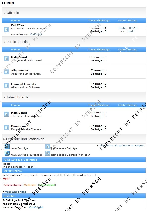 Eine vollkommen andere Forumansicht. Sie ist an das Forenlayout von wbb angelehnt, jedoch etwas völlig einzigartiges. Es gibt 2 Versionen, eine etwas hellere, und eine etwas dunklere.