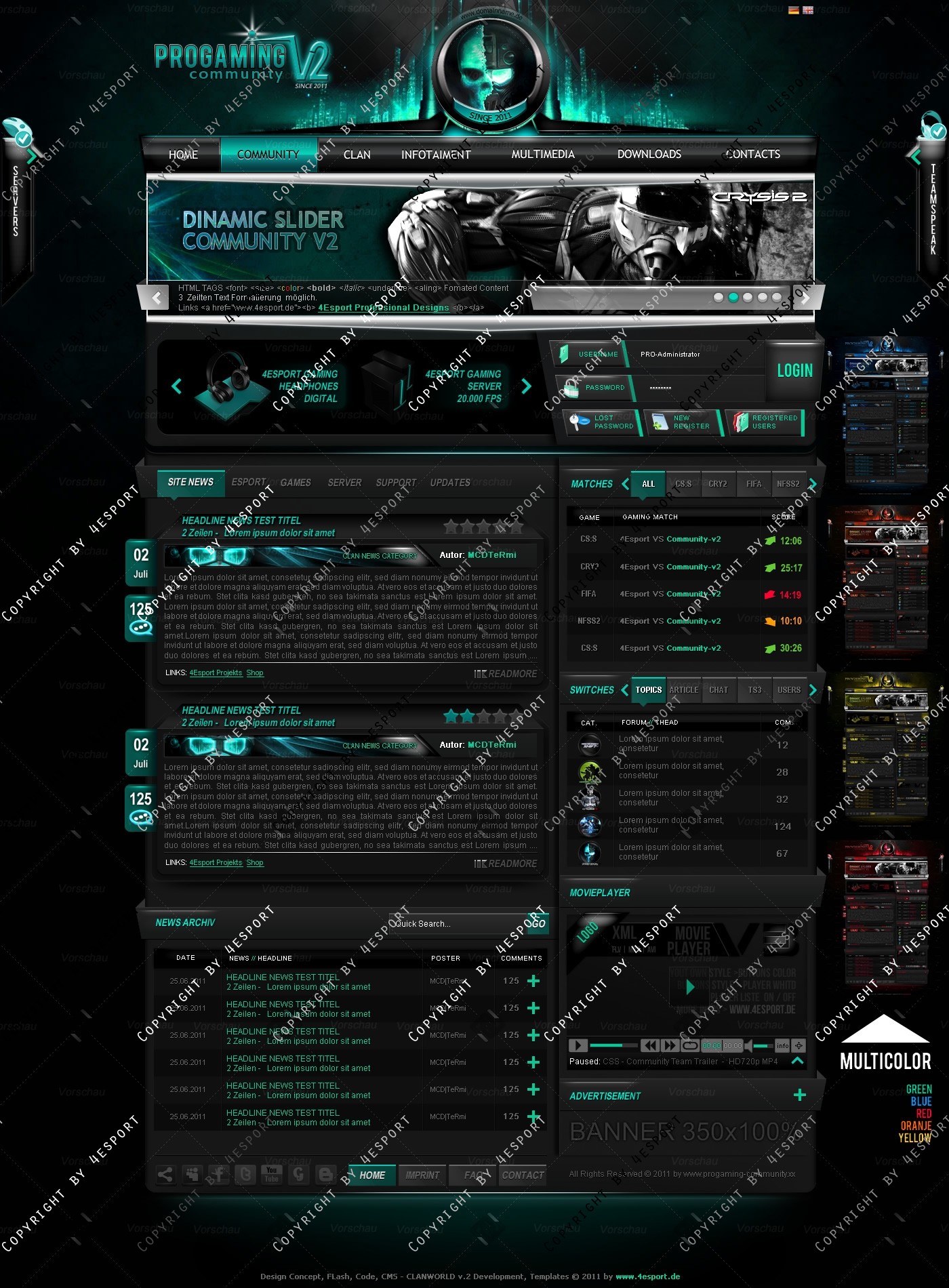 PROGaming Community V2 - Templates Premium Edition mit Flash Player 1 V3 Custom Edition und Featured System, CMS Erweiterung Webspell 4.2.2a, wird auf wünsch auf ClanWORLD v1.1 auch gecodet.